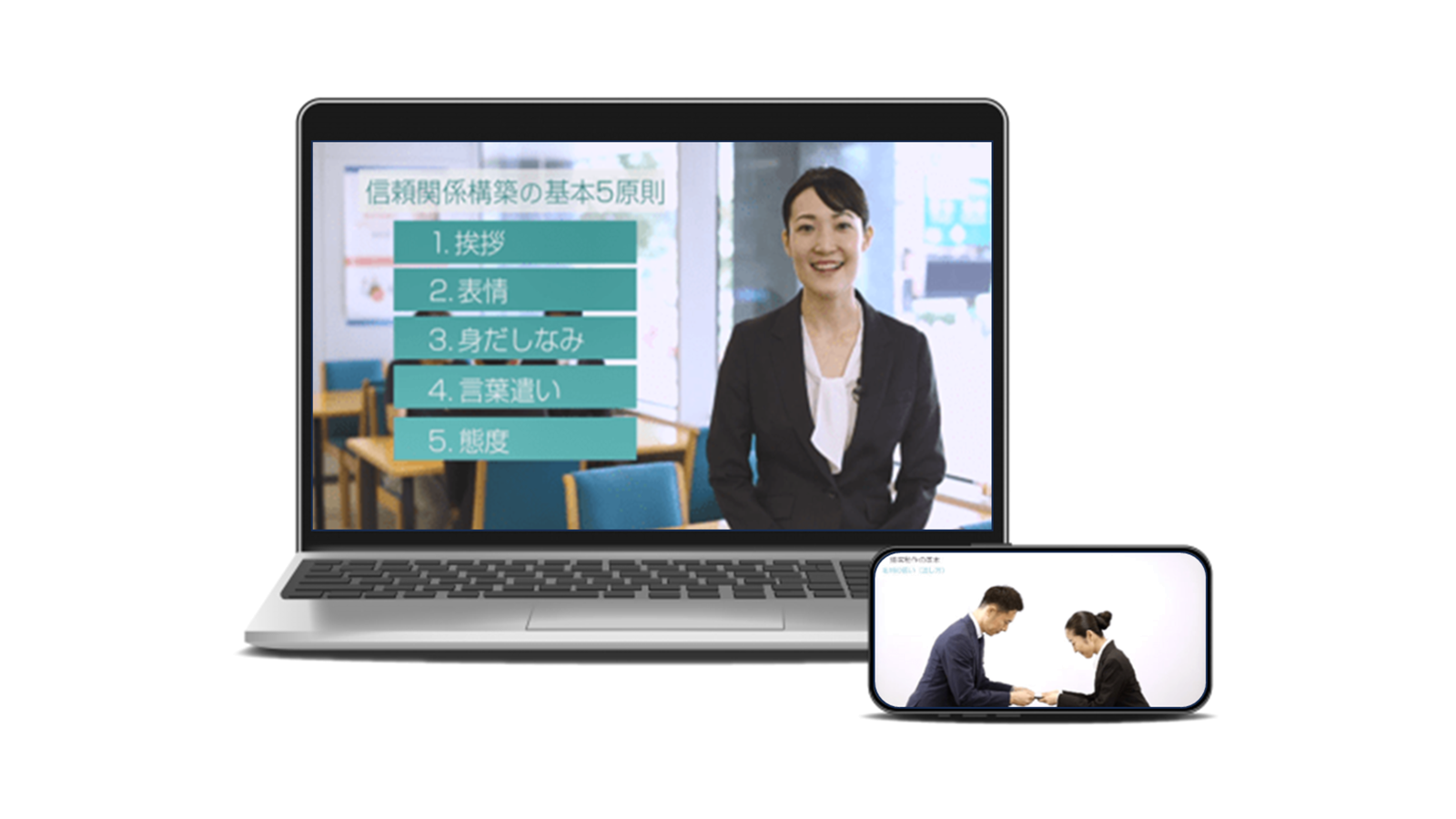 スマホ1つで、社会人に欠かせないビジネスマナーを短時間で実践的に習得できるマイクロラーニング型研修です。