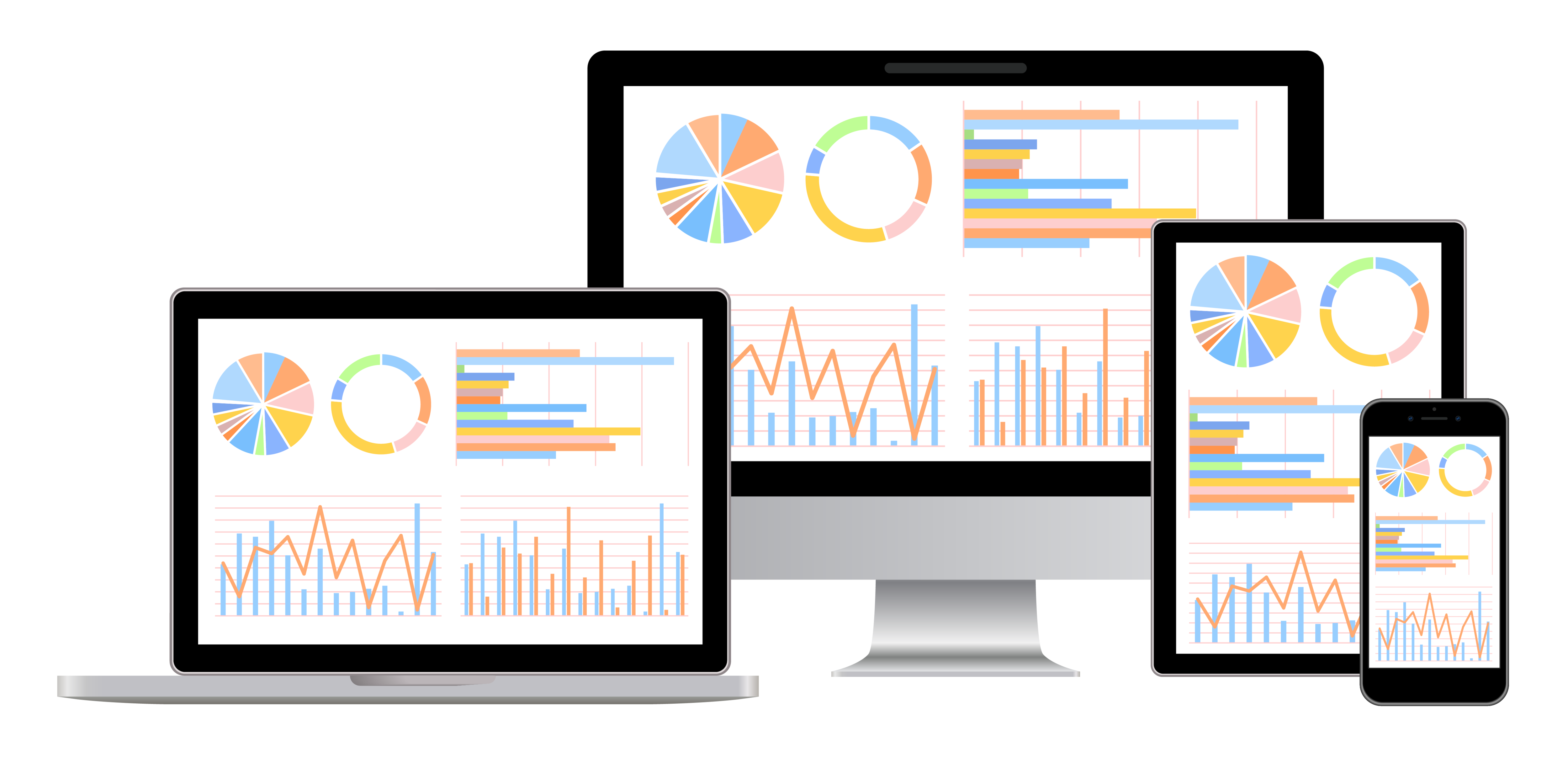 PC、スマートフォン、タブレットに完全対応。移動中などのスキマ時間を活用した学習で、受講率アップに貢献します。