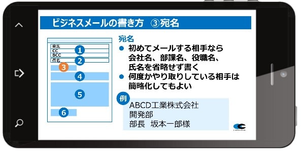 ビジネスで使用するメールのマナーや書き方など、基本的なメール作成について学べます。