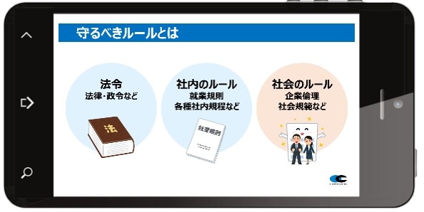 コンプライアンスの重要性や、社会人として守るべきルールなどを学べます。