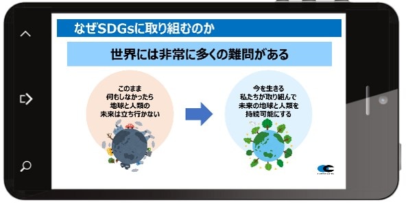 SDGsとは何か、また、社員一人ひとりができることなどを学べます。