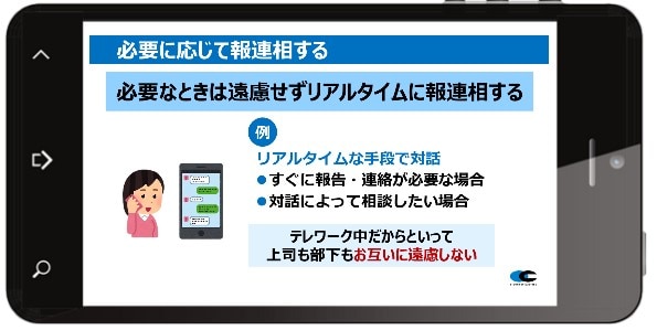 テレワークをする際の注意点や、コミュニケーションの取り方など、活用方法について学べます。